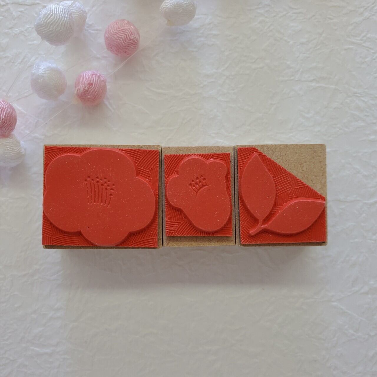 椿と一緒に捺して、冬の季節を表現できます。